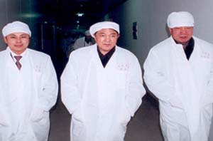 二○○三年元月二十六日下午,江苏省药品监督管理局毛季琳局长带领局党组成员和各部门负责人来到我公司制药厂就平博·(pinnacle)官方网站药业建设与发展中的有关问题进行现场办公。王勇董事长及公司领导、有关工程技术人员参加现场办公会。
