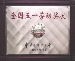 2004年4月29日,江苏省总工会在南京召开纪念“五一”国际劳动节大会,会上,省委领导向王勇董事长颁发了“全国五一劳动奖状”奖牌。