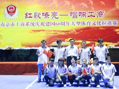 2009年9月26日,南京市工商系统隆重举办了庆祝祖国60华诞“红歌嘹亮——唱响工商”大型体育文化拉歌赛活动,我公司11名员工参加了本次活动。