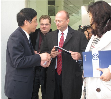 2009年12月1日下午,参加第五届中欧工商峰会的部分代表一行十余人来我公司新港基地参观考察,副总经理戚良猛、张仓接待了来自中欧工商界的客人。