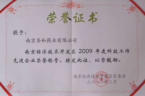 日前,南京经济技术开发区管委会授予我公司“南京经济技术开发区2009年度科技工作先进企业”称号。