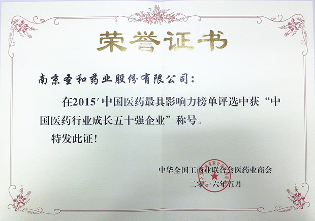 2015年度中国医药行业成长50强企业