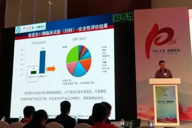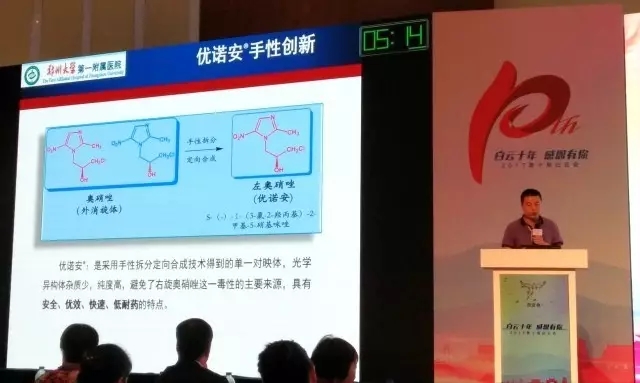 郭红军副主任向与会者分享了治疗厌氧菌感染的临床经验,并着重推荐了我司独家品种“优诺安®左奥硝唑氯化钠注射液”,其在治疗厌氧菌方面的疗效得到了与会者的一致肯定,尤其是优诺安?在安全性方面的独特优势更是引起了大家的广泛关注。