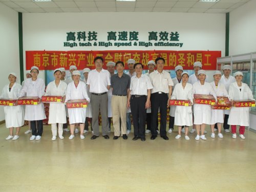 7月15日,夏日炎炎,南京市新兴产业工会王军主任、朱耀华处长一行五人在戚良猛副总经理的陪同下,冒着酷暑来到我司新港生产基地,慰问奋战在生产一线的广大职工,为一线职工送上了防暑降温慰问品,给职工们带来了清凉和关怀。