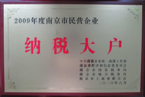 日前,由中共南京市委统战部、南京市经济和信息化委员会、南京市人力资源和社会保障局、南京市国家税务局、南京市地方税务局、南京市工商业联合会联合评出了“2009年度南京市民营企业纳税大户”,我公司在此次评比中光荣上榜。