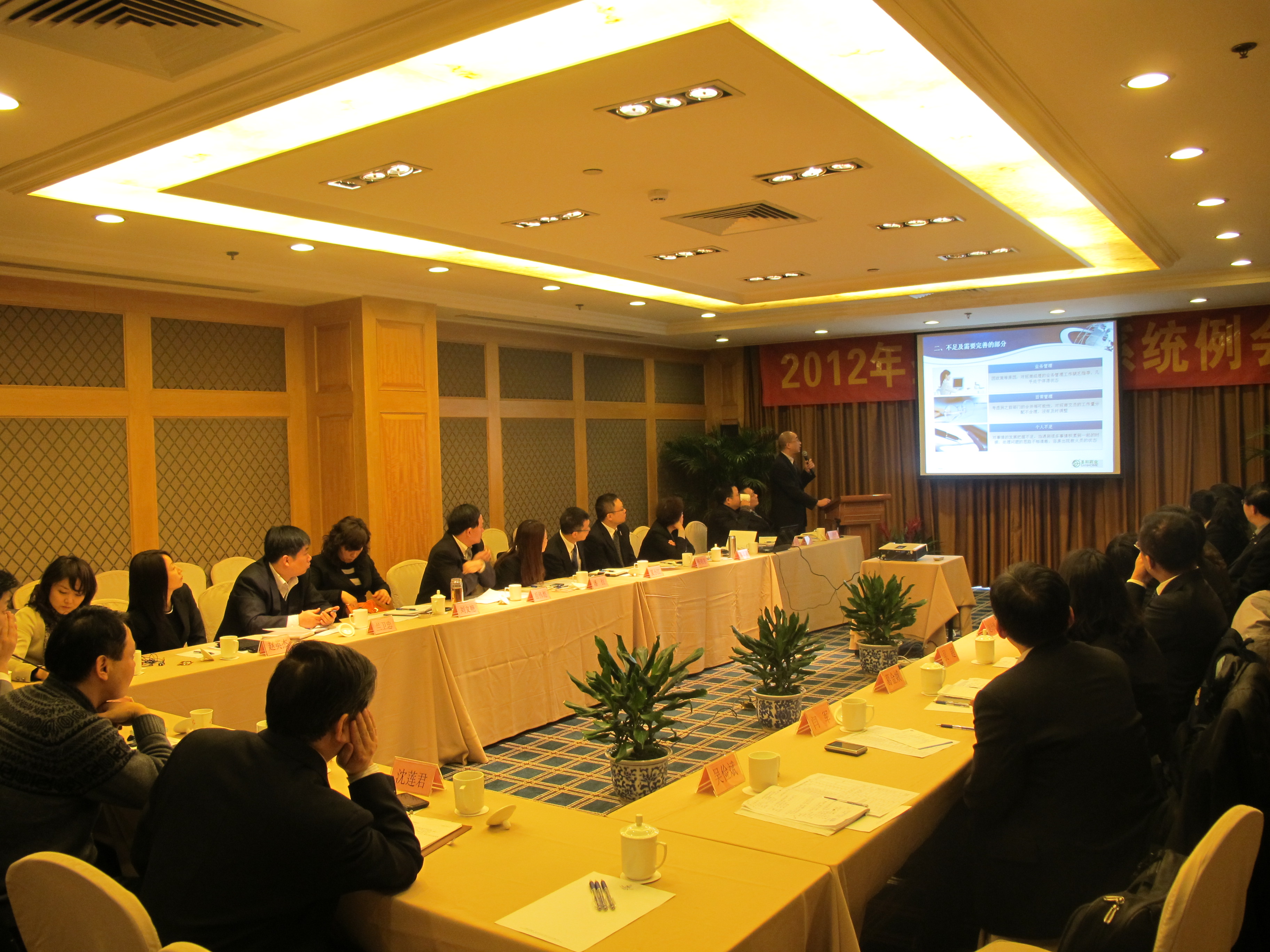 本网讯 2月20-21日,销售系统第一次月度例会在南京中山大厦宾馆召开。会议由医贸公司执行总经理沈莲君主持,出席会议的有王勇董事长,朱晓江副总经理,政府事务部茅越佳经理以及11个事业部总经理和销售系统各部门领导。