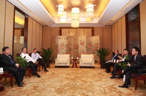 桑国卫副委员长、陈竺部长与王勇董事长(右二)等参会代表亲切交谈