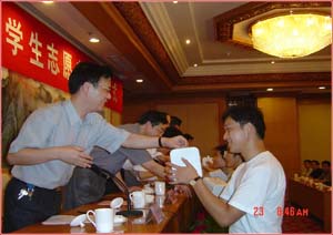 全国青联委员、南京十大杰出青年、我公司董事长兼总经理王勇先生到会并致辞。王勇先生一向热心社会公益事业,当他听说这些志愿者要放弃优越的生活环境和良好的工作条件去支援服务西部建设时,深深的为他们敢于接受恶劣自然环境和艰苦生活条件的挑战、自愿到经济落后的西部无私奉献的精神所感动,他认为,大学生志愿服务西部计划是在全面建设小康社会、加快推进社会主义现代化建设的新形势下推出的一项功在当代、利及长远的崇高事业,西部的未来、祖国的未来肯定会因为他们而更加精彩。王勇董事长热情洋溢的讲话受到志愿者的热烈欢迎,数次被掌声打断。